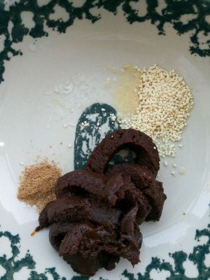 添水搅拌成黏稠的状态,不放水酱太干了。备用。