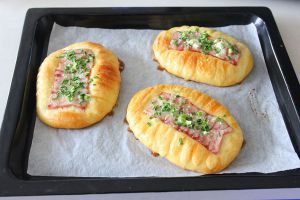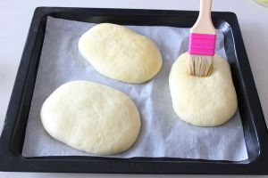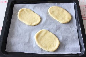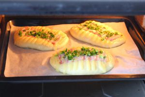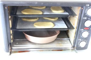 8.把烤盘放进烤箱里,底下放盆热水,关上烤箱门,不开火进行第二次发酵