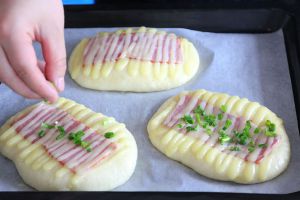 培根:3条、沙拉酱:适量、葱花:适量、鸡蛋液:少许