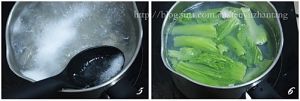 用勺子去浮沫(可以忽视这一步)。放入芥菜。