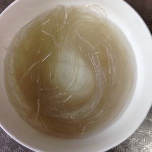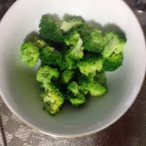 腌制虾,泡软粉丝的时间处理西兰花。将其剪小瓣,洗净