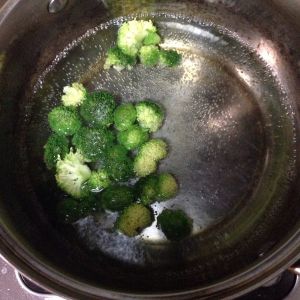 水烧开,放少许盐,将西兰花入水,汆一下。烧开即可