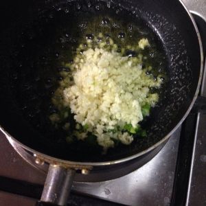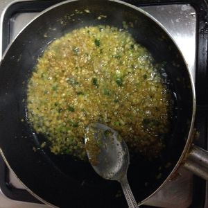 有烫后倒入蒜末和葱末,翻炒出香味,用中小火