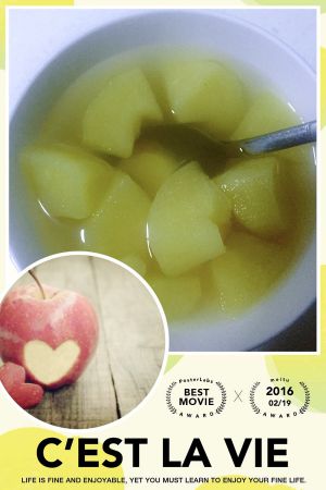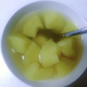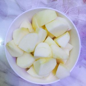 清水漫过苹果加冰糖大火煮开后,在小火煮十分钟。让冰糖的甜浸入果肉里。