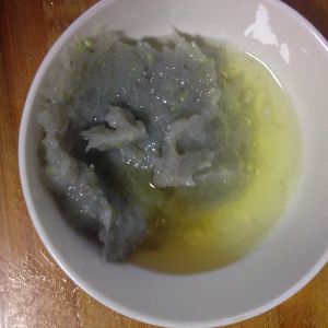 放入少量葱末,蛋清、盐和料酒
