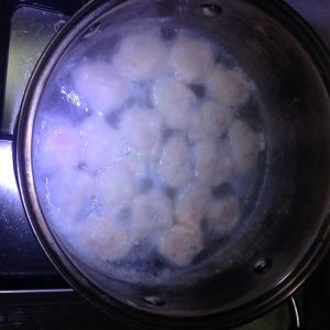 温水下锅,我是用勺子舀的,大小尽量均匀。