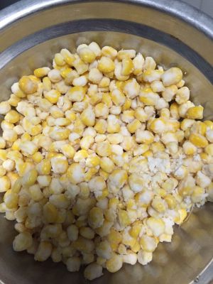 小贴士~玉米罐头菜市场都有。先用刀背把罐头打开,玉米倒出来,用水冲洗干净。