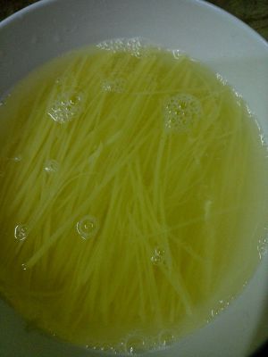 土豆切特细丝放水泡着备用。