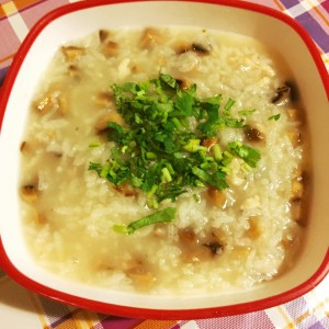 香菇也是头一天晚上就泡软放在冰箱的,不要泡一夜,不然没有味道了。煮粥的同时把香菇切丁。
