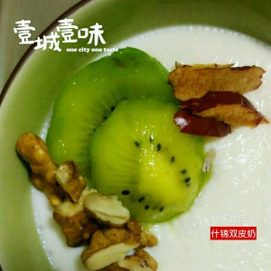 出锅后静置冷却;可依个人口味随意加辅料点缀,我用小勺挖了两块猕猴桃,切了一点红枣丝,放了几块核桃仁,大功告成~