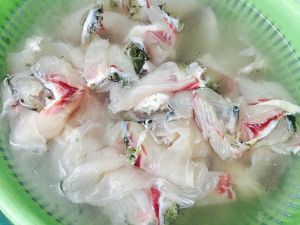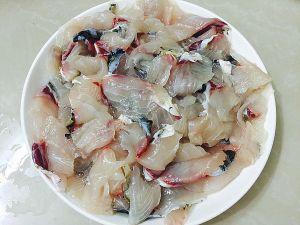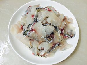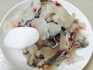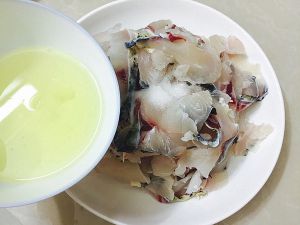 片好的鱼片,用清水反复冲洗掉表面的黏液。沥干水分
