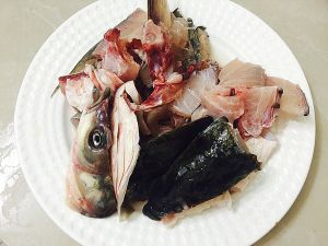 水煮沸3分钟后,放入鱼骨头。