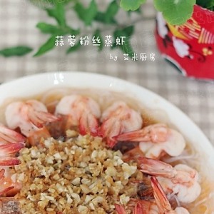 拌好的姜蒜末均匀的铺在虾上,再盖上保鲜膜,蒸锅加水烧开后,放入锅中大火蒸6分钟左右。