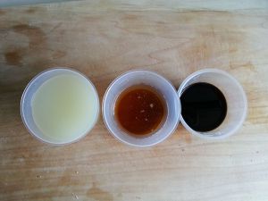 30克花生油混合、一杯酱油:10克老抽40克生抽混合。如果用整鸡来做,用料加倍。
