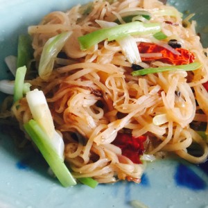 翻炒土豆丝 均匀撒入盐 醋 生抽 然后待土豆快熟时候加入葱 爆炒待熟出锅