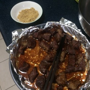 烤好后蘸烤肉料或孜然粉!十分好吃
