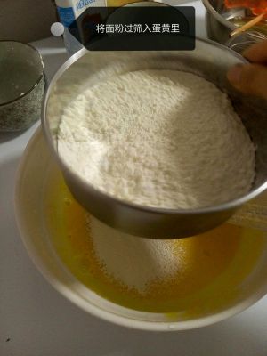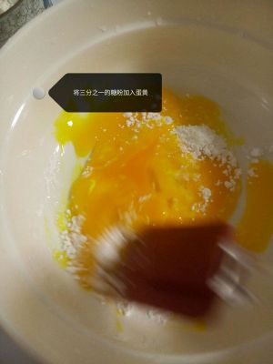 将三分之一的糖粉加入蛋黄里面,搅拌均匀