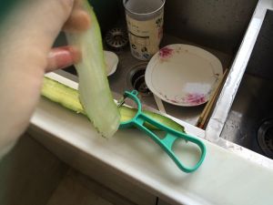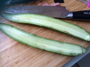 将黄瓜对半切开!