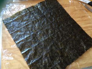 放上紫菜,注意摆出菱形。