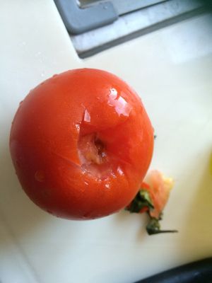 煮好后,将番茄去皮。
