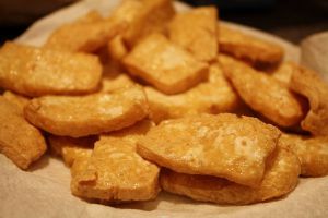 虾仁变色后,放入炸好的豆腐,倒入一点点高汤,煮一小会儿;