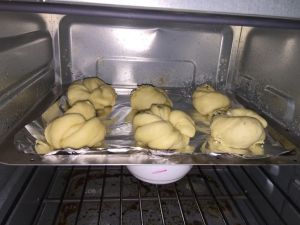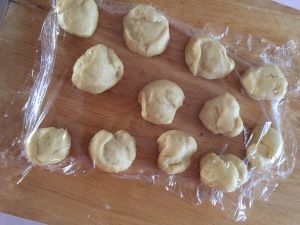 揉搓,分成6个相同大小面团就好(我开始分出12个,太小,合并为6个)盖上保鲜膜,15分钟