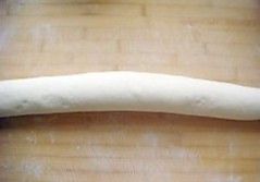 将适量小苏打加一点点水化开后倒入发好的面团中,充分揉匀。