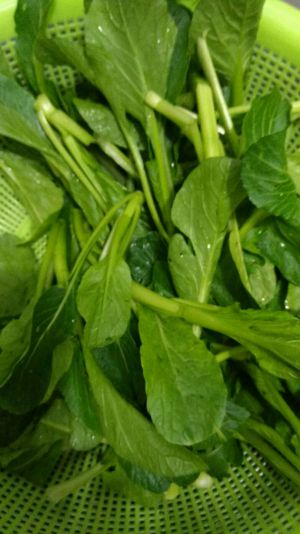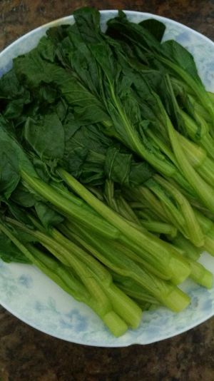 菜芯,先把芯放水煮半熟再整体放进去煮,捞起来。