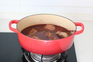 90分钟后,调入盐,继续炖30分钟,然后转大火稍稍收一下汁至汤汁浓稠即可。