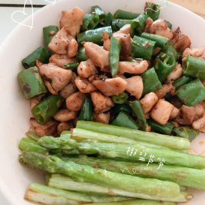 二荆条切丁,直接入锅干煸,有种辣辣的感觉,煸一会就捞起来