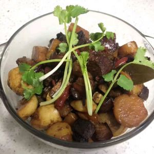移入砂锅焖煮到五花肉软糯以后加入土豆,收干水以后起锅就好了(这一步一定要小火,要随时观察到不然很容易糊掉)时间一小时左右