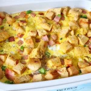 鸡蛋加少量水打散均匀的淋入锅中煎熟