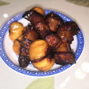 第一次做,老抽多了一点,没有放盐,颜色不好,味道还可以,给自己一个掌声。