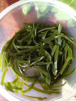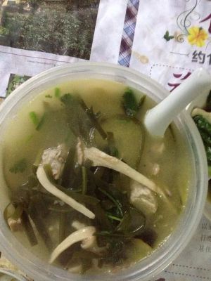 排骨熬制大约四十分钟后,排骨可用筷子戳入,加入海带少许水,倒少许白酒或黄酒在炖半小时。刚开始用大火炖,加入海带后用小火炖。