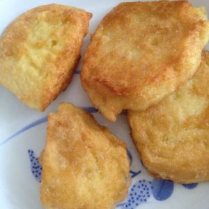 锅烧热放油。。油量自己把握。。下裹了鸡蛋液的馒头片。。炸至金黄。。