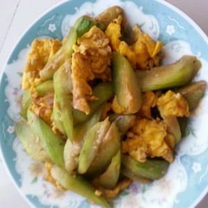 丝瓜熟后加鸡蛋翻炒均匀即可。