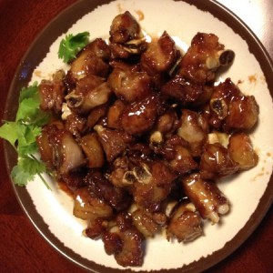 排骨2支(用黑猪肉比较好吃香甜)洗净凉干,锅里放油,把排骨稍微煎一下,待成金黄色时即可。