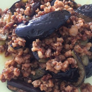 茄子洗净切滚刀块,蒜瓣切蓉,鱼香肉丝调料倒少许用水调匀,备用。