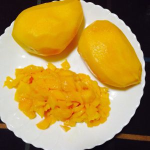 2:芒果和草莓切成小颗粒(草莓忘记拍了)