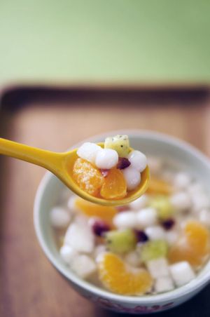 偷懒,在超市买的小圆子哈,其实可以用糯米粉200克,加入100ML的热水,和成面团后,自己搓成糯米小圆子。