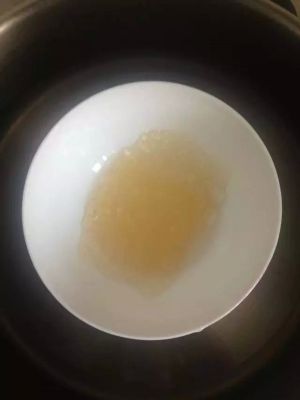 泡软的吉利丁片沥干水分,放碗里隔水加热至融化成吉利丁溶液。