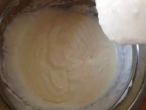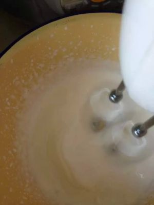 马斯卡朋用电动打蛋器搅打至顺滑无颗粒的状态。