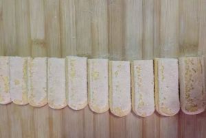 从冰箱拿出蛋糕前,将剩余手指饼干切成统一的合适的长度。