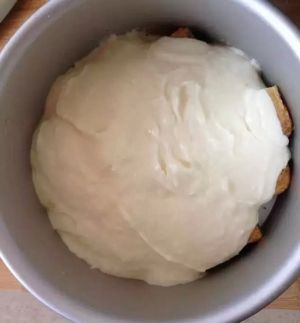 将剩余的蛋糕糊倒入模具中,抹平表面。放入冰箱冷藏6小时或者过夜。