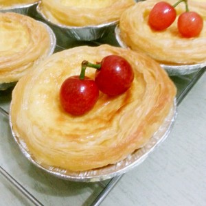 牛奶,奶油,炼奶混合融化糖粉,加入蛋黄搅匀,再加入低粉搅匀。