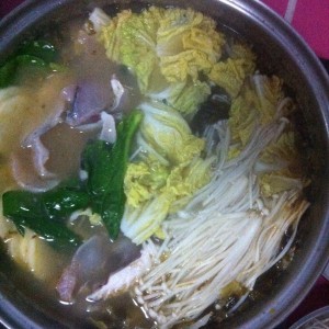 一边吃一边烫腌好的鱼肉和菜!配上一碗米饭你会吃的欲罢不能