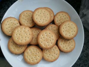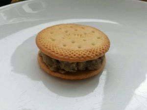 取一块饼干,抹上豆馅,盖上一块饼干。一个就做好了。