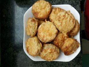 坐油锅,油温四五成热时,将做好的饼干裹上面糊。