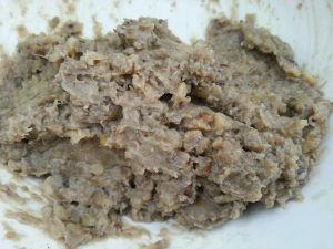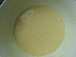 调制面糊,鸡蛋打入碗中,加面粉 淀粉 适量清水调成酸奶状的面糊,可加入少许白糖(因为我的馅不甜,所以放了点糖)。静置10分钟,可先做好面糊在做饼干。
