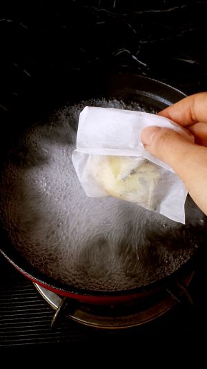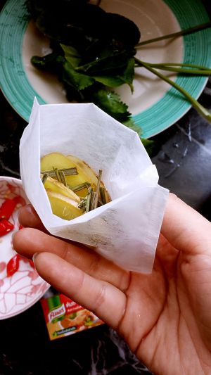 姜,香茅放入调料包封好,我是为了往下容易取出调料才用的调料封袋。